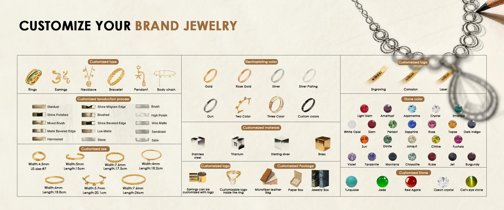 Dongguan Mingxi Hardware Accessories company limit, a manufacturer company located in Dongguan, Guangdong, specializes in stainless steel jewelry including necklaces, bracelets, rings, earrings, and anklets. Our company boasts a robust production capacity with a 4200 square meter facility equipped with advanced machinery such as spot welding machines, laser machines, cutting machines, chain cutting machines, and polishing machines. We have 12 dedicated employees, including 2 R&D engineers and 1 QC inspector, ensuring stringent quality control throughout the production process. Our streamlined production flow includes cutting, polishing, welding, IPQC checking, laser processing, assembling, FQC checking, and packing. We offer extensive customization services including material replacement, label, packaging, color, size, logo, and graphic design customization.